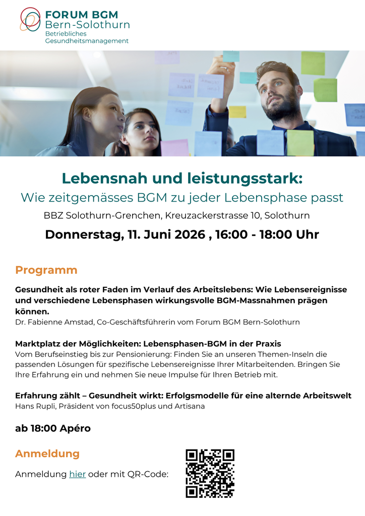 16:00 - 18:00 Uhr Lebensnah und leistungsstark: Wie zeitgemässes BGM zu jeder Lebensphase passt